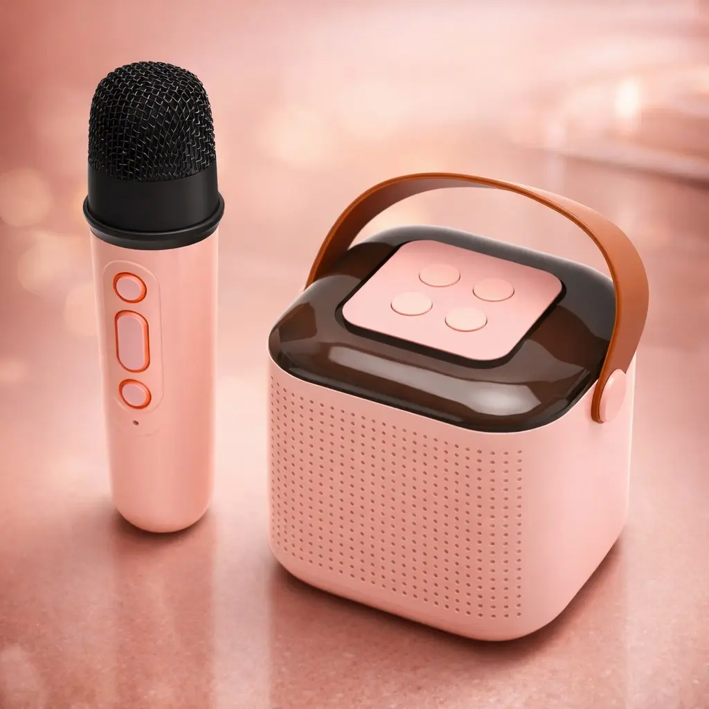 No te dejes engañar por su tamaño: su parlante de rango completo ofrece un sonido claro y envolvente, mientras que su aro de luces LED de colores crea la atmósfera perfecta para cada interpretación. Con un diseño elegante en tono pastel y una práctica manija de transporte, es el accesorio definitivo para tus sesiones de canto improvisadas.